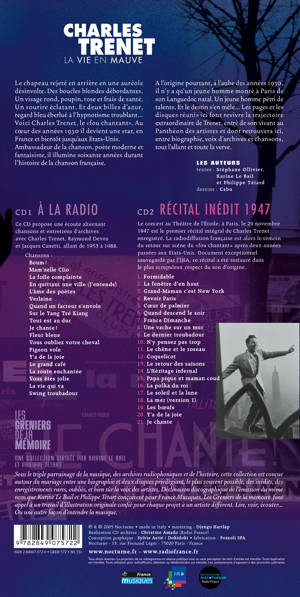 Une biographie de Charles Trenet, par Karine Le Bail, Stéphane Ollivier et Philippe Tétard, illustrée par Cabu et accompagnée de deux CD. <br /> Le cd 1 propose une écoute alternant chansons et entretiens d'archives avec Charles Trenet, Raymond Devos, et Jacques Canetti, entre 1953 et 1988. <br /> Le cd 2 reproduit le concert inédit du 29 novembre 1947 au Théâtre de l'Etoile à Paris, le premier récital intégral de Charles Trenet enregistré. La radiodiffusion française est alors le témoin du retour sur scène du "fou chantant" après deux années passées aux Etats Unis. Document exceptionnel sauvegardé par l'INA, ce récital a été restauré dans le plus scrupuleux respect du son d'origine.