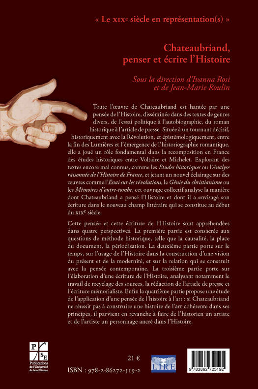 A partir de textes peu connus, dont les Etudes historiques, ces contributions réfléchissent sur la manière dont le texte littéraire est en mesure de prendre en charge un discours historique, en faisant le point sur la pensée historienne de Chateaubriand.