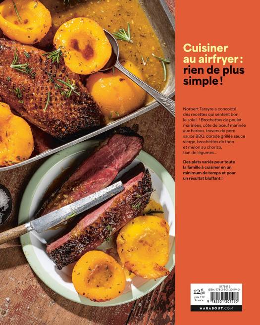 Norbert Tarayre a concocté des recettes qui sentent bon le soleil ! Brochettes de poulet marinées, côte de boeuf marinée aux herbes, travers de porc sauce BBQ, dorade grillée sauce vierge, brochettes de thon et melon au chorizo, tian de légumes…
