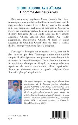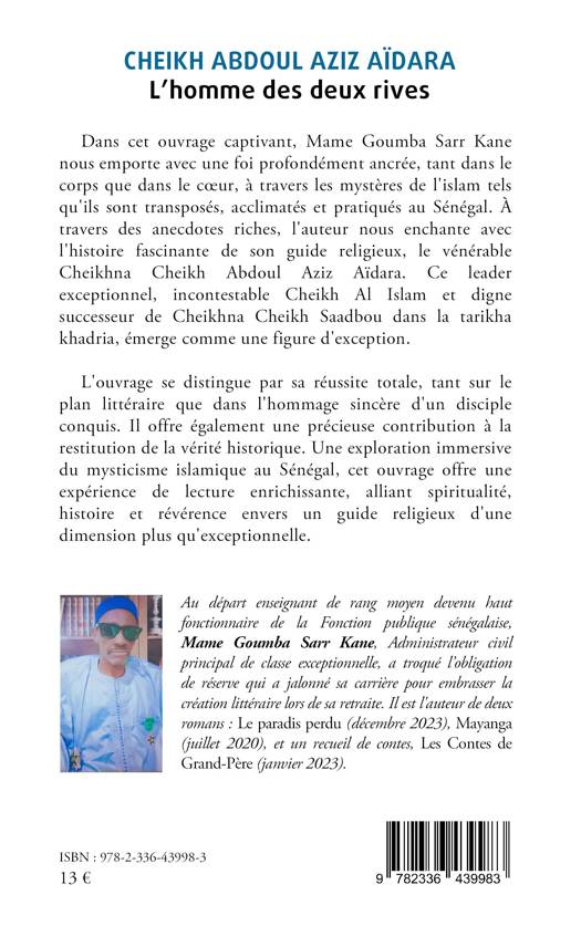 Dans cet ouvrage captivant, Mame Goumba Sarr Kane nous emporte avec une foi profondément ancrée, tant dans le corps que dans le coeur, à travers les mystères de l'islam tels qu'ils sont transposés, acclimatés et pratiqués au Sénégal. À travers des anecdotes riches, l'auteur nous enchante avec l'histoire fascinante de son guide religieux, le vénérable Cheikhna Cheikh Abdoul Aziz Aïdara. Ce leader exceptionnel, incontestable Cheikh Al Islam et digne successeur de Cheikhna Cheikh Saadbou dans la tarikha khadria, émerge comme une figure d'exception. L'ouvrage se distingue par sa réussite totale, tant sur le plan littéraire que dans l'hommage sincère d'un disciple conquis. Il offre également une précieuse contribution à la restitution de la vérité historique. Une exploration immersive du mysticisme islamique au Sénégal, cet ouvrage offre une expérience de lecture enrichissante, alliant spiritualité, histoire et révérence envers un guide religieux d'une dimension plus qu'exceptionnelle.