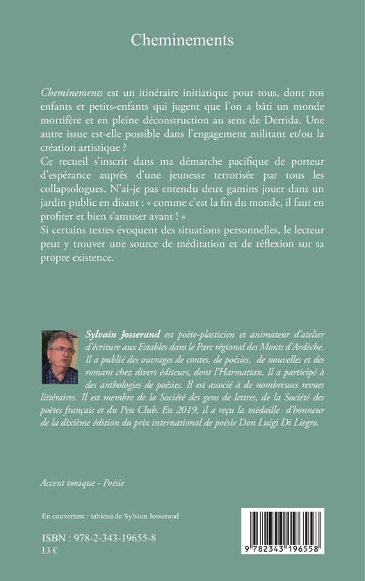 "Cheminements" est un itinéraire initiatique pour tous, dont nos enfants et petits-enfants qui jugent que l'on a bâti un monde mortifère et en pleine déconstruction au sens de Derrida. Une autre issue est-elle possible dans l'engagement militant et/ou la création artistique ? Ce recueil s'inscrit dans ma démarche pacifique de porteur d'espérance auprès d'une jeunesse terrorisée par tous les collapsologues.