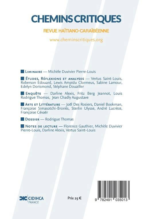 Chemins Critiques, Revue haïtiano-caribéenne, porte son attention d’abord sur Haïti et la sous-région dont ce pays fait partie – à la lumière, bien sûr, du contexte international. Rappelons que Haïti, c’est tout ensemble la portion d’île haïtienne et sa diaspora. La revue haïtiano-caribéenne reflète et affiche cette réalité transnationale dans la composition et la localisation de son comité de rédaction. Ce comité réunit des membres venant d’Haït-Île et de sa diaspora, et de la Caraïbe ; il est pluri-localisé, structuré en noyaux locaux inter-connectés.