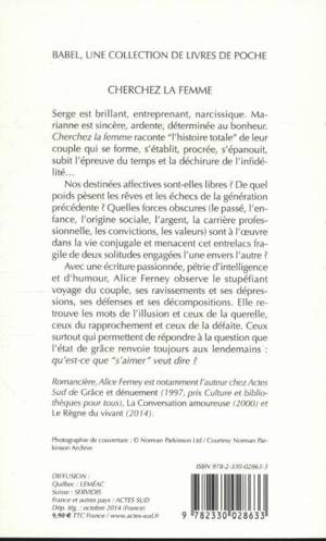 Serge est brillant, entreprenant, narcissique. Marianne est sincère, ardente, déterminée au bonheur. Cherchez la femme raconte « l'histoire totale » de leur couple qui se forme, s'établit, procrée, s'épanouit, subit l'épreuve du temps et la déchirure de l'infidélité...