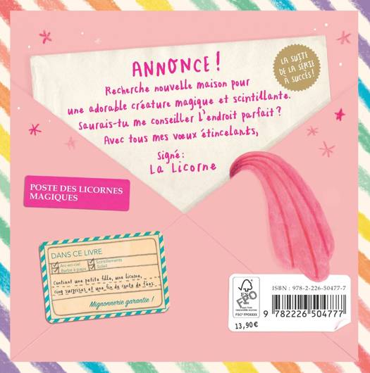 Un beau jour, alors qu'une petite fille joue dans sa cabane, on toque à la porte : c'est une licorne ! Ça ne fait aucun doute, elle s'est perdue, et il faut donc lui trouver une nouvelle maison. Direction l'animalerie, la ferme, la fête forraine... sans succès. Puis la meilleure idée qui soit vient à la petite fille : un véritable château de conte de fées ! Les au revoir sont douloureux et la petite fille rentre chez elle, seule et attristée. Jusqu'à ce qu'elle reçoive la plus belle des lettres : celle de son amie la licorne... et si la maison parfaite était beaucoup plus proche qu'elles ne l'imaginaient ?