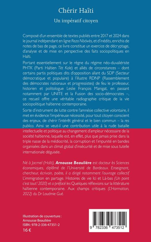 Composé d'un ensemble de textes publiés entre 2017 et 2024 dans le journal indépendant en ligne Rezo Nòdwès, et d'inédits, enrichis de notes de bas de page, ce livre constitue un exercice de décryptage, d'analyse et de mise en perspective des faits sociopolitiques en Haïti. Portant essentiellement sur le règne du régime néo-duvaliériste PHTK (Parti Haïtien Tèt Kale) et alliés de circonstances - dont certains partis politiques dits d'opposition allant du SDP (Secteur démocratique et populaire) à l'illustre RDNP (Rassemblement des démocrates nationaux et progressistes) de Leslie François Manigat, en passant notamment par UNITE et la Fusion des socio-démocrates -, ce recueil offre une véritable radiographie critique de la vie sociopolitique haïtienne contemporaine. Sorte d'instrument de lutte contre l'amnésie collective volontaire, il met en évidence l'impérieuse nécessité, pour tout citoyen conscient des enjeux, de chérir l'intérêt général et le bien commun - la res publica. Ainsi se veut-il une contribution utile à la rude bataille intellectuelle et politique au changement d'ampleur nécessaire de la société haïtienne, laquelle est, en effet, plus que jamais prise dans la triple nasse de la médiocrité, la corruption et l'impunité en bandes organisées dans un climat global d'insécurité et de mise sous tutelle internationale déguisée.
