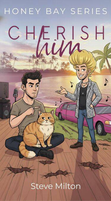 Cherish Him is a 42,000-word grumpy-sunshine celebrity gay romance. Two sweet, silly guys feed each other tapas, listen to Muddy Waters, and research male anatomy on their way to a feel-good HEA.