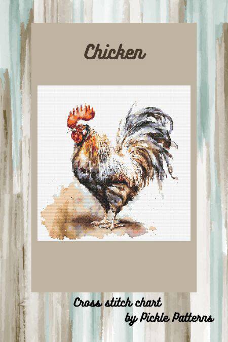 These cross stitch charts are a vintage style whimsical design of a chicken.