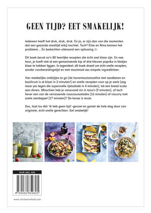 Hoe lekker is het om na die lange werk- of studiedag gewoon binnen 20 minuten en met maar zes ingrediënten klaar te zijn met je maaltijd? En vaak geldt dat voor de hele dag, want is het niet heerlijk om goed maar toch supersnel te ontbijten? Enne, als je gehaast achter je bureau moet lunchen, heb je toch alsnog liever een verse salade dan een standaard bammetje kaas? Nou, aan al die situaties hebben we gedacht; dit boek heet niet voor niets het 20 minutes or less-kookboek. Allemaal recepten die vaak nog veel sneller klaar zijn dan 20 minuten. In slechts 3 minuten kun je al een bannoffee yoghurt maken, een overheerlijke maar snelle rijstsalade to go is al in 4 minuten klaar en avondeten met taco’s kan al in 9 minuten. En wat dacht je van een loempia bowl, gemaakt in 14 minuten?