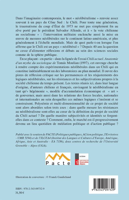 Le mot "néolibéralisme" renvoie assez souvent au Chili. Pour toute une génération, le traumatisme du coup d'Etat de 1973 ne met pas simplement fin au rêve porté par le président Salvador Allende, et à "la voie chilienne au socialisme" : l'intervention militaire enclenche aussi la mise en oeuvre de mesures néolibérales sur le continent latino-américain, et plus généralement à l'échelle mondiale. Mais de quoi parle-t-on lorsque l'on affirme que le Chili est un pays "néolibéral"? Depuis 40 ans, la question ne cesse d'alimenter réflexions et débats au sein des sciences sociales comme de la sphère publique (Des articles en Français et en Espagnol).