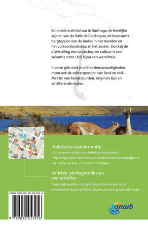 De uitgebreide Chili & Paaseiland reisgids telt meer dan 400 pagina’s boordevol hoogtepunten, originele tips, schitterende wandelroutes en alles over de achtergronden van land en volk. Daarnaast alle praktische informatie zoals openingstijden van musea, tips voor overnachtingen en vervoerstijden. Inclusief stadsplattegronden, overzichtskaarten en achterin een uitneembare kaart. Kortom: een onmisbare ANWB-gids voor een geweldige rondreis door Chili & Paaseiland!