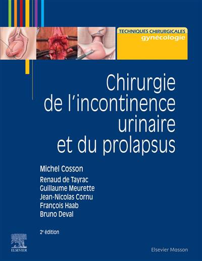 La chirurgie de l’incontinence urinaire et du prolapsus féminins est une intervention à la fois pratiquée par des chirurgiens gynécologues et des chirurgiens urologues. C’est une chirurgie fonctionnelle qui va prendre une place de plus en plus importante en raison de l’allongement de la durée de la vie elle a d’ailleurs donné naissance à une nouvelle discipline chirurgicale l’urogynécologie ou pelvi-périnéologie. Cet ouvrage aborde les principales interventions chirurgicales de l’incontinence et du prolapsus chez la femme et les déroule pas à pas : matériel et instrumentation installation de la patiente préparation préopératoire et soins péri et post-opératoires. Il évoque également sous l’angle de la chirurgie digestive les corrections du prolapsus du rectum comme la rectopexie ou la résection rectosigmoïdienne offrant ainsi une lecture pluridisciplinaire complète. Cette nouvelle édition est une mise à jour complète des données chirurgicales elle intègre les dernières innovations en termes de technique mais également de matériel et propose une iconographie largement renouvelée. Cet ouvrage qui se présente comme un outil d’aide à la décision s’imposera sans aucun doute comme une référence pour les réunions pluridisciplinaires au cours desquels sont établis des protocoles de traitements.