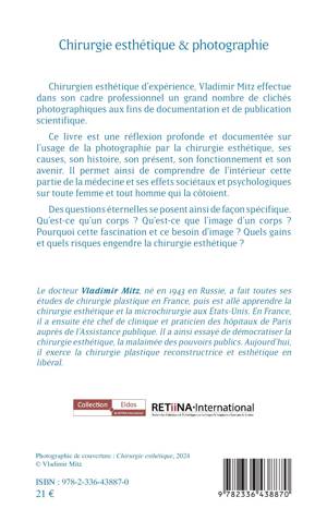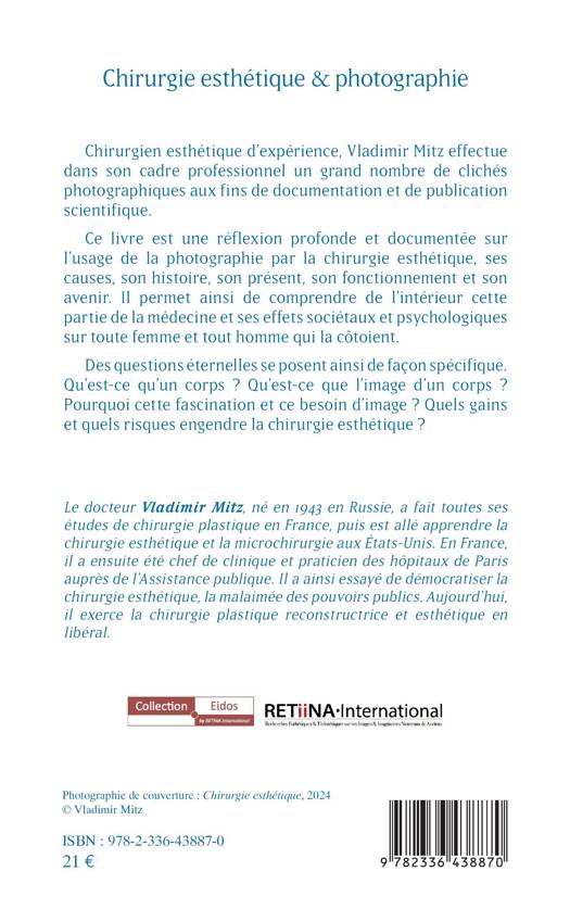 Chirurgien esthétique d'expérience, Vladimir Mitz effectue dans son cadre professionnel un grand nombre de clichés photographiques aux fins de documentation et de publication scientifique. Ce livre est une réflexion profonde et documentée sur l'usage de la photographie par la chirurgie esthétique, ses causes, son histoire, son présent, son fonctionnement et son avenir. Il permet ainsi de comprendre de l'intérieur cette partie de la médecine et ses effets sociétaux et psychologiques sur toute femme et tout homme qui la côtoient. Des questions éternelles se posent ainsi de façon spécifique. Qu'est-ce qu'un corps ? Qu'est-ce que l'image d'un corps ? Pourquoi cette fascination et ce besoin d'image ? Quels gains et quels risques engendre la chirurgie esthétique ?