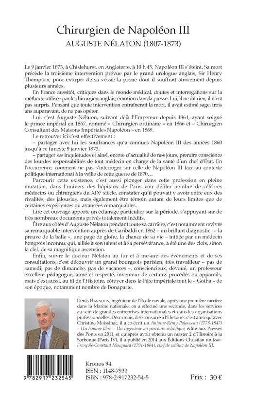 Auguste Nélaton suit l'Empereur depuis 1864 et est nommé "Chirurgien ordinaire" en 1866 et "Chirurgien Consultant des Maisons Impériales Napoléon" en 1869. Le retrouver ici, c'est partager avec lui les souffrances qu'a connues Napoléon III des années 1860 jusqu'à ce funeste 9 janvier 1873 et partager ses inquiétudes et ainsi prendre conscience des lourdes responsabilités de tout médecin en charge de la santé d'un chef d'Etat. En l'occurrence, comment ne pas s'interroger sur celle de Napoléon III face au contexte politique international à la veille de cette guerre de 1870.