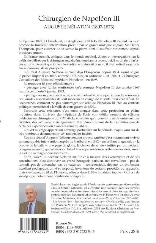 Auguste Nélaton suit l'Empereur depuis 1864 et est nommé "Chirurgien ordinaire" en 1866 et "Chirurgien Consultant des Maisons Impériales Napoléon" en 1869. Le retrouver ici, c'est partager avec lui les souffrances qu'a connues Napoléon III des années 1860 jusqu'à ce funeste 9 janvier 1873 et partager ses inquiétudes et ainsi prendre conscience des lourdes responsabilités de tout médecin en charge de la santé d'un chef d'Etat. En l'occurrence, comment ne pas s'interroger sur celle de Napoléon III face au contexte politique international à la veille de cette guerre de 1870.