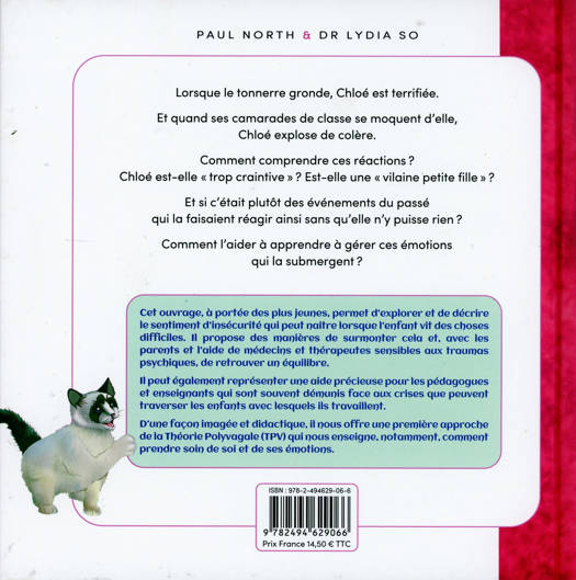 L'histoire de Chloé est conçue pour aider les enfants à comprendre les raisons pour lesquelles ils peuvent parfois ressentir de la peur, de la colère ou du stress, et comment ils peuvent apprendre à gérer ces émotions. À travers l'expérience de Chloé, le livre explique des concepts de base de la psychologie de l'enfant d'une manière accessible et engageante. En lisant ce livre, les enfants peuvent s'identifier aux sentiments de Chloé et apprendre des stratégies pour se sentir en sécurité et gérer leur stress. Les parents et les thérapeutes peuvent également utiliser ce livre comme outil pour discuter des émotions avec les enfants et pour les aider à accepter une aide psychologique si nécessaire.