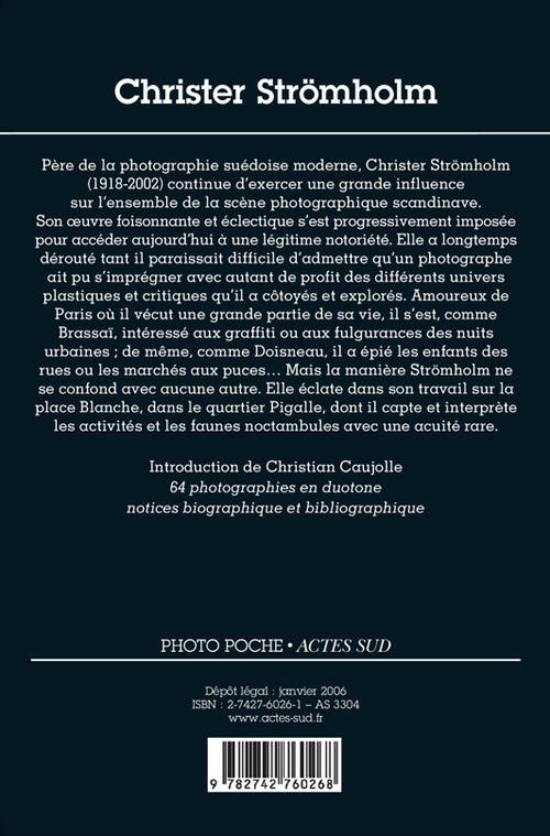 Père de la photographie suédoise moderne, Christer Strömholm (1918-2002), a influencé durablement l'ensemble de la scène photographique scandinave. Son style est marqué par une grande diversification qui reflète les genres et les passions multiples d'un découvreur insatiable, témoin et complice des grands courants et artistes de son temps.