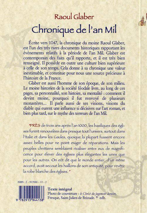 Écrite vers 1047, la chronique du moine Raoul Glaber,
