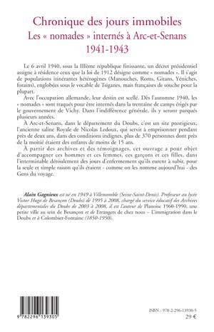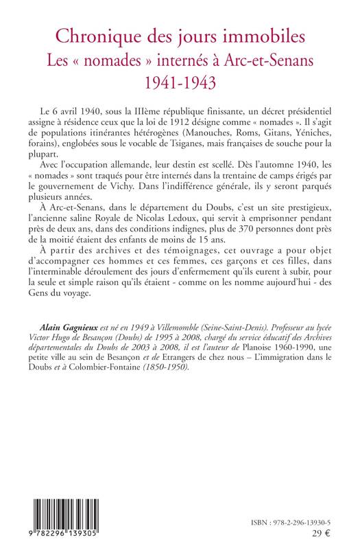 Le 6 avril 1940, un décret présidentiel assigne à résidence ceux que la loi de 1912 désigne comme "nomades". Il s'agit de populations itinérantes (Manouches, Roms, Gitans, Yéniches, forains), englobées sous le vocable Tsiganes, mais françaises de souche pour la plupart. L'occupation allemande scelle leur destin : dans l'indifférence générale, ils sont traqués et internés dès l'automne 1940, dans une trentaine de camps. Cet ouvrage retrace le quotidien des internés d'Arc-et-Senans, dans le Doubs, à partir d'archives et de témoignages.