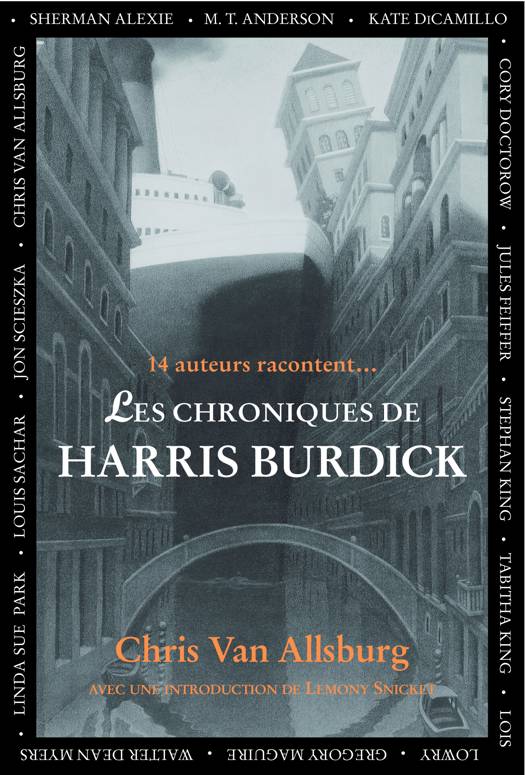 Quatorze grands auteurs d'aujourd'hui se sont fondus dans les dessins de Harris Burdick, et vous invitent à les rejoindre : Tabitha King, Jon Scieszka, Sherman Alexie, Gregory Maguire, Cory Doctorow, Jules Feiffer, Linda Sue Park, Walter Dean Myers, Lois Lowry, Kate DiCamillo, M.T Anderson, Louis Sachar, Stephen King et Chris Van Allsburg.