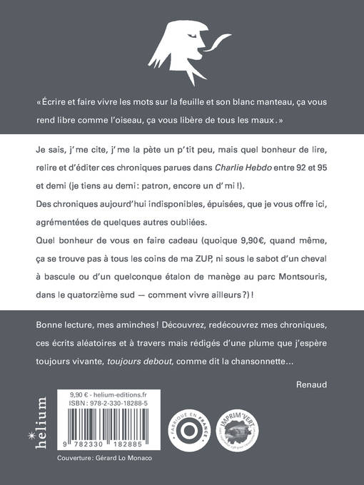 Un joli livre aux couleurs de Renaud, ses Chroniques parues dans Charlie Hebdo et celles inédites, qu'on a oubliées, ici re- publiées.