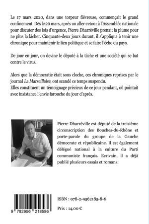 Le 17 mars 2020, dans une torpeur fiévreuse, commençait le grand confinement. Dès le 20 mars, après un aller-retour à l’Assemblée nationale pour discuter des lois d’urgence, Pierre Dharréville prenait la plume pour ne plus la lâcher. Cinquante-deux jours durant, il s’appliqua à tenir une chronique pour maintenir le lien politique et se faire l’écho du pays. De jour en jour, on devine le député à la tâche et une société qui se bat contre le virus. Alors que la démocratie était sous cloche, ces chroniques reprises par le journal La Marseillaise, ont scandé ce temps suspendu. Elles constituent un témoignage précieux de ce jour pendant, où pointait avec insistance l’envie farouche du jour d’après.