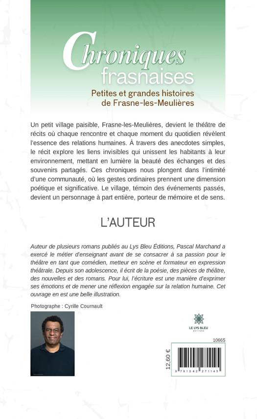 Un petit village paisible, Frasne-les-Meulières, devient le théâtre de récits où chaque rencontre et chaque moment du quotidien révèlent l'essence des relations humaines. À travers des anecdotes simples, le récit explore les liens invisibles qui unissent les habitants à leur environnement, mettant en lumière la beauté des échanges et des souvenirs partagés. Ces chroniques nous plongent dans l'intimité d'une communauté, où les gestes ordinaires prennent une dimension poétique et significative. Le village, témoin des événements passés, devient un personnage à part entière, porteur de mémoire et de sens.