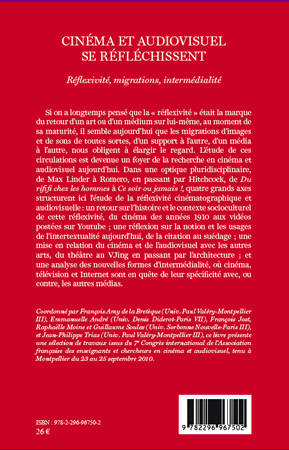 Si la "réflexivité" était la marque du retour d'un art sur lui-même, aujourd'hui les migrations d'images et de sons nous obligent à élargir le regard. Quatre axes structurent cette étude : un retour sur l'histoire et le contexte socioculturel de cette réflexivité ; une réflexion sur la notion et les usages de l'intertextualité, une mise en relation du cinéma et de l'audiovisuel avec les autres arts ; une analyse des nouvelles formes d'intermédialité.
