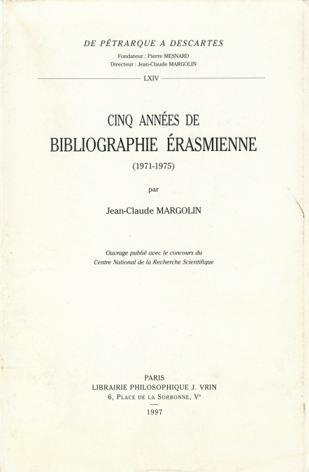 Parallèlement à ses travaux divers relatifs à Érasme et à l’érasmisme (études biographiques et critiques, éditions, traductions), l’auteur poursuit depuis de nombreuses années une bibliographie analytique de tous les erasmiana publiés (voire inédits) depuis 1936 (année du quatrième centenaire de la mort d’Érasme). Avec ce quatrième volume sera couvert le champ de quarante années de bibliographie érasmienne. De nombreux index – notammment les index des éditions et des traductions, et les index thématiques – permettent de déterminer, à travers l’univers, les points de concentration d’études spécifiques, l’importance de quelques “chantiers” ouverts dans l’Ancien et le Nouveau Monde, la plus grande popularité de certaines œuvres, les intérêts nouveaux suscités par la pensée et les textes de l’humaniste hollandais, avec, à l’occasion des temps forts marqués par les célébrations des anniversaires (1936, 1967-69, 1986 – pour le 450e anniversaire de la mort d’Érasme –) une véritable accumulation de travaux. La poursuite de ses travaux bibliographiques, que l’auteur espère pouvoir mener jusqu’à l’actualité la plus immédiate, semble bien confirmer, une fois de plus, la parole prophétique de John Colet : “Nomen Erasmi nunquam peribit”, le nom d’Érasme ne périra jamais.