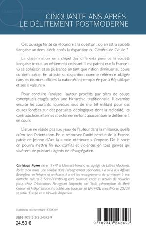 Où en est la société française un demi-siècle après la disparition du Général de Gaulle ? La dissémination en archipel des différents pans de la société française traduit un délitement croissant. Il est patent que la France a vu sa cohésion et sa puissance en tant que nation diminuer au cours du demi-siècle. En atteste sa disparition comme référence obligée dans les discours officiels, la nation étant remplacée par la République et ses « valeurs ». Pour conduire l’analyse, l’auteur procède par plans de coupe conceptuels étagés selon une hiérarchie traditionnelle. Il examine ensuite les courants nouveaux issus de mai 68 militant pour des causes fondées sur des postulats idéologiques dont la radicalité, les contradictions internes et externes ne font qu’accentuer le délitement en cours. L’issue ne réside pas dans la militance. Pour retrouver l’unité perdue de la France, patrie de Jeanne d’Arc, la « voie intérieure » s’impose. De la sorte on pourra mettre fin aux conflits et violences en tous genres qui s’avèrent de puissants agents de désagrégation.