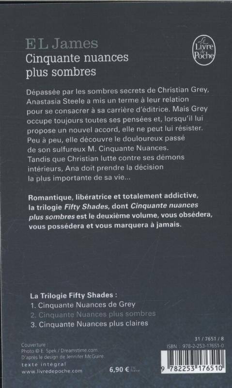 Depassee par les sombres secrets de Christian Grey, Anastasia Steele a mis un terme a leur relation pour se consacrer a sa carriere d'editrice. Mais Grey occupe toujours toutes ses pensees et, lorsqu'il lui propose un nouvel accord, elle ne peut lui resister. Peu a peu, elle decouvre le douloureux passe de son sulfureux M. Cinquante Nuances. Tandis que Christian lutte contre ses demons interieurs, Ana doit prendre la decision la plus importante de sa vie... Romantique, liberatrice et totalement addictive, la trilogie Fifty Shades vous obsedera, vous possedera et vous marquera a jamais.