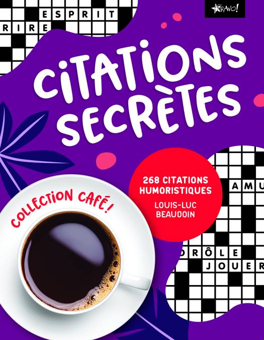 Remplissez chacune des grilles avec les lettres fournies et découvrez une citation humoristique ! Les citations secrètes : un loisir passionnant pour les amoureux de la langue française ! Découvrez 268 grilles spécialement conçues pour vous faire sourire en sirotant un bon café.