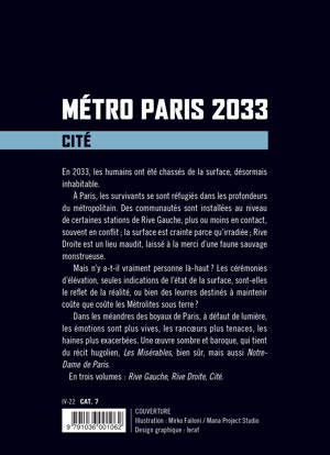 À Paris, les survivants se sont réfugiés dans les profondeurs du métropolitain. Des communautés sont installées au niveau de certaines stations de Rive Gauche, plus ou moins en contact, souvent en conflit ; la surface est crainte parce qu’irradiée ; Rive Droite est un lieu maudit, laissé à la merci d’une faune sauvage monstrueuse.