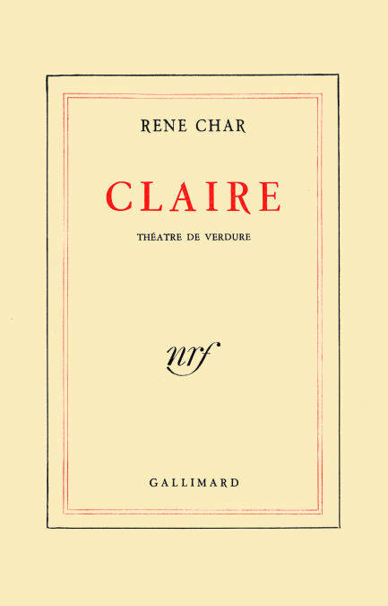 Cette pièce en dix tableaux, pour un Théâtre de verdure, a pour principal personnage une rivière, symbolisée par une jeune fille, Claire, fille de la nuée et du glacier. Cette rivière, c'est le rêve, le bonheur ou le déchirement, sans quoi l'existence n'a pas de prix : c'est en somme la Poésie. "L'aube, chaque jour, nous éveille avec une question insignifiante qui sonne parfois comme une boutade lugubre. Ainsi ce matin : "Trouveras-tu aujourd'hui quelqu'un à qui parler, aux côtés de qui te rafraîchir ?" Le monde contemporain nous a déjà retiré le dialogue, les jeux et le bonheur ; il s'apprête à descendre au centre même de notre vie pour éteindre le dernier foyer, celui de la Rencontre. Ici il va falloir s'opposer ou mourir, se faire casser la tête ou garder sa fierté. Nous jouons contre l'hostilité contemporaine la carte de Claire. Et si nous la perdons, nous jouerons encore la carte de Claire. Nos atouts sont perpétuels, comme l'orage et comme le baiser, comme les fontaines et les blessures qu'on y lave." René Char.