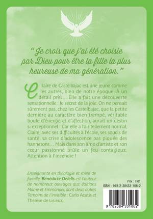 Le livre idéal pour découvrir la vie et la spiritualité de Claire de Castelbajac (1953-1975), une jeune femme artiste, originale et pleine de joie. Dans cette biographie qui se lit comme un roman, Bénédicte Delelis, avec un art puissant de la narration et une plume enchantée, propose une véritable rencontre avec cette jeune si attachante. Une seule envie quand on ferme ce livre : comme Claire, brûler du désir de devenir saint ! À partir de 10 ans.