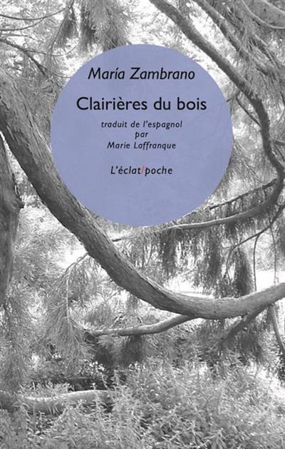 « La pensée vivifie », dit María Zambrano. Toute sa vie, nourrie silencieusement de sa pensée, peut en témoigner, comme en témoignent ces Clairières du bois, dont elle dira elle-même : « Parmi mes oeuvres publiées, c'est je crois le livre qui répond le mieux à cette idée longtemps formulée que penser est avant tout, à la racine, en tant qu'acte, déchiffrer ce que l'on sent, si on entend par sentir le « sentir originel ». Et aussi à cette idée que l'homme est l'être qui souffre sa propre transcendance en un incessant processus d'unification entre la passivité et la connaissance, l'être et la vie. Vie véritable, surprise seulement dans quelques clairières qui s'ouvrent entre ciel et terre au sein de l'initiale frondaison. Et à l'horizon lointain où se noient le ciel et la terre, l'être et la vie, la vie et la mort. »