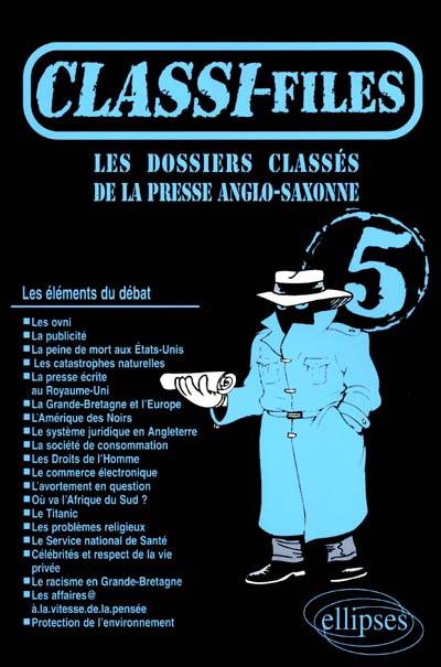 Les ovni • La publicité • La peine de mort aux Etats-Unis • Les catastrophes naturelles • La presse écrite au Royaume-Uni • La Grande-Bretagne et l'Europe • L'Amérique des Noirs • Le système juridique en Angleterre • La société de consommation • Les Droits de l'Homme • Le commerce électronique • L'avortement en question • Où va l'Afrique du Sud ? • Le Titanic • Les problèmes religieux • Le Service national de Santé • Célébrités et respect de la vie privée • Le racisme en Grande-Bretagne • Les affaires@ à.la.vitesse.de.la.pensée • Protection de l'environnement.