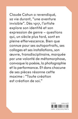 Claude Cahun a revendiqué, sa vie durant, "une aventure invisible". Dès 1917, l'artiste explore son identité et son expression de genre - questions qui, un siècle plus tard, sont en pleine effervescence. Bien que connue pour ses autoportraits, ses collages et ses installations, son oeuvre, transdisciplinaire, marquée par une volonté de métamorphose, convoque la poésie, la photographie et la performance. Et dans chacune de ses pièces résonne cette maxime : "Toute création est création de soi."