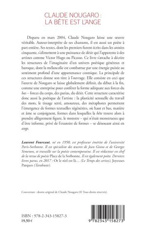 Auteur-interprète, Claude Nougaro est aussi un poète à part entière. Ses textes s'alimentent à une puissance de désir qui l'apparente à des artistes comme Victor Hugo ou Picasso. Ce livre s'attache à décrire les structures de l'imaginaire d'un univers poétique généreux et baroque. L'oeuvre de Nougaro se laisse définir comme une entreprise pour conférer la forme adéquate aux forces du bas forces du corps, des parias, du désir. Cette structure caractérise donc aussi la poétique de l'artiste : la plasticité sensuelle du travail des mots, le tissage serré, amoureux, des métaphores permettant l'émergence de formes textuelles régénérées.