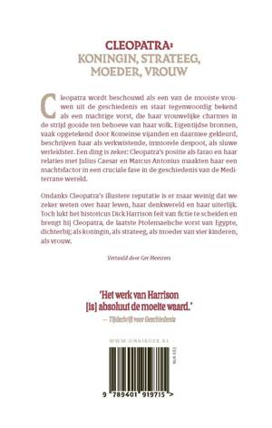 In 'Cleopatra' scheidt Dick Harrison feit van fictie en lukt het hem om Cleopatra, de laatste Ptolemaeïsche vorst van Egypte, dichterbij te brengen; als koningin, als politica, als moeder van vier kinderen, als vrouw. Want ondanks haar illustere reputatie is er maar weinig dat we zeker weten over Cleopatra, haar leven, haar denkwereld en haar uiterlijk. Wat we wel weten is opgetekend door Romeinse vijanden en daarmee gekleurd.
