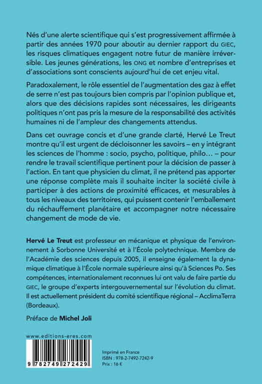 Le réchauffement planétaire n'est pas seulement imputable à l'effet de serre mais aussi à l'irresponsabilité des décideurs et au déni de certains chefs d'État par inculture scientifique, méfiance paranoïaque ou intérêt politique. Ils sont à l'origine de l'irréversibilité du changement climatique en raison du temps perdu. Pour envisager les conséquences de ce phénomène et passer à l'action, il est urgent de décloisonner les savoirs ¿ en y intégrant les sciences de l'homme : socio, psycho, politique, philo... C'est ce que tente de faire l'auteur. En tant que physicien du climat, il ne prétend pas apporter une réponse complète mais il souhaite mobiliser la société civile pour participer à des actions de proximité efficaces et mesurables à tous les niveaux des territoires afin de contenir l'emballement des processus activateurs et accompagner le nécessaire changement de mode de vie.