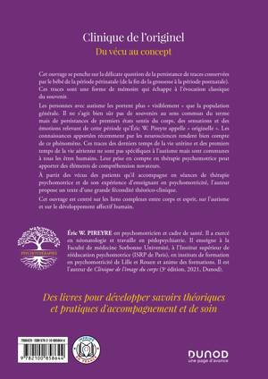 Les personnes avec autisme les portent plus « visiblement » que la population générale. Il ne s’agit bien sûr pas de souvenirs au sens commun du terme mais de persistances de premiers états sentis du corps, des sensations et des émotions relevant de cette période qu’Éric W. Pireyre appelle « originelle ». Les connaissances apportées récemment par les neurosciences rendent bien compte de ce phénomène. Ces traces des derniers temps de la vie utérine et des premiers temps de la vie aérienne ne sont pas spécifiques à l’autisme mais sont communes à tous les êtres humains. Leur prise en compte en thérapie psychomotrice peut apporter des éléments de compréhension novateurs.