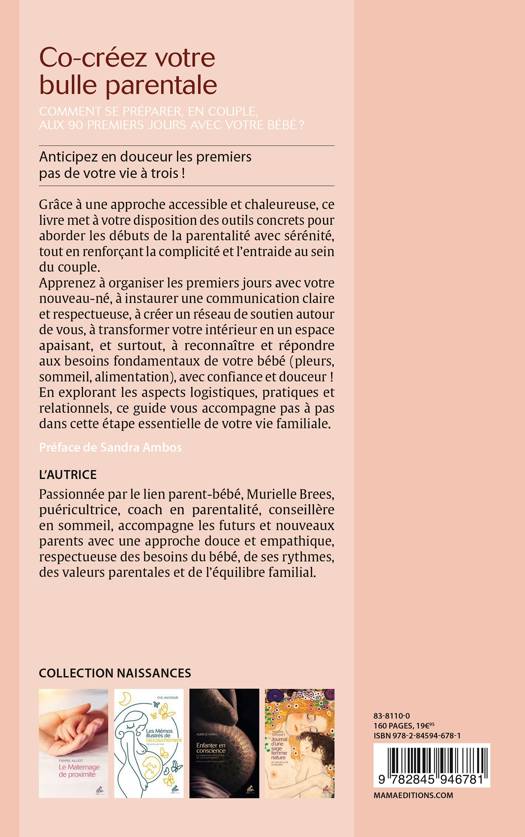 Grâce à une approche accessible et chaleureuse, ce livre met à votre disposition des outils concrets pour aborder les débuts de la parentalité avec sérénité, tout en renforçant la complicité et l’entraide au sein du couple. Apprenez à organiser les premiers jours avec votre nouveau-né, à instaurer une communication claire et respectueuse, à créer un réseau de soutien autour de vous, à transformer votre intérieur en un espace apaisant, et surtout, à reconnaître et répondre aux besoins fondamentaux de votre bébé (pleurs, sommeil, alimentation), avec confiance et douceur ! En explorant les aspects logistiques, pratiques et relationnels, ce guide vous accompagne pas à pas dans cette étape essentielle de votre vie familiale.