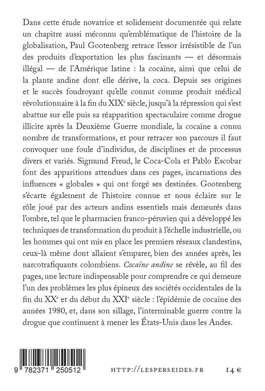 Dans cette étude novatrice et solidement documentée qui relate un chapitre aussi méconnu qu'emblématique de l'histoire de la globalisation, Paul Gootenberg entreprend de retracer l'essor irrésistible de l'un des produits d'exportation les plus fascinants - et désormais illégal - de l'Amérique latine : la cocaïne, ainsi que celui de la plante andine dont elle dérive, la coca.