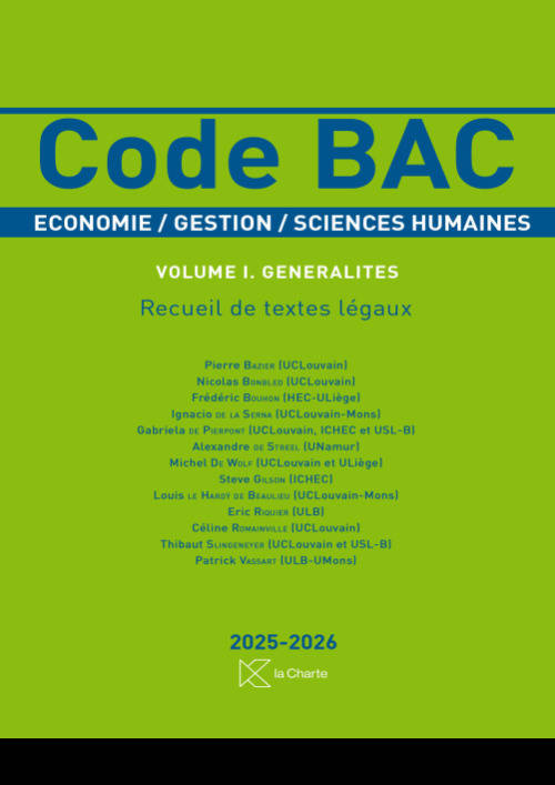 L’étude du droit ne peut se faire qu’à partir d’une lecture attentive des règles en vigueur. Pour des étudiants en économie/gestion/sciences humaines, il importe dès lors de se familiariser avec des textes de lois et avec l’usage d’un code. Comme les intérêts des étudiants diffèrent de ceux des praticiens, ils doivent pouvoir disposer d’un instrument de travail à leur taille. Ce "Volume I – Généralités" du Code BAC comprend une sélection de textes légaux importants et généraux, qui seront traités pendant leurs études BAC. Cette sélection permettra aux étudiants d’utiliser ce code pendant toute la durée du baccalauréat et même en master.