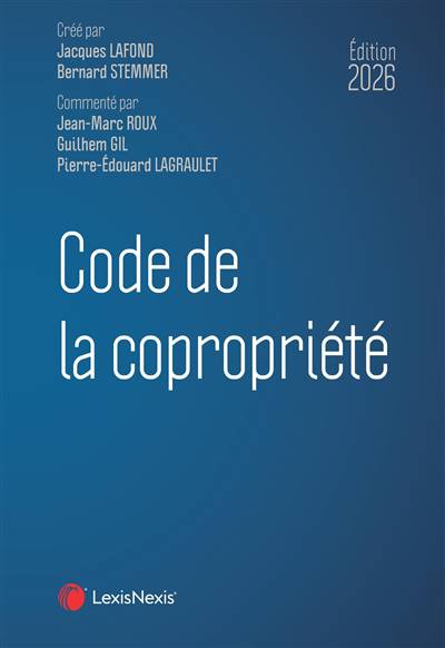 Le Code de la copropriété LexisNexis est la référence en matière de droit de la copropriété. Ce code, créé par Jacques Lafond et Bernard Stemmer, réunit toutes les règles régissant l'organisation et le fonctionnement des copropriétés. Plus de 60 annexes thématiques complètent les deux grands textes fondant la matière. Ce code est l'outil de référence des professionnels (avocats, notaires, syndics de copropriété entre autres) comme des particuliers impliqués dans l'administration ou la gestion d'un immeuble. 1/ Ce code de référence présente les deux principaux textes du droit de la copropriété, commentés et enrichis de jurisprudence. S'y ajoute plus de 60 annexes thématiques. 2/ Jean-Marc Roux, Guilhem Gil et Pierre-Edouard Lagraulet, auteurs reconnus en droit de l'immobilier et de la copropriété, ont sélectionné et commenté les textes et la jurisprudence les plus pertinents. 3/ Pratique : accès facile à l'information grâce à l'index et aux annexes thématiques.