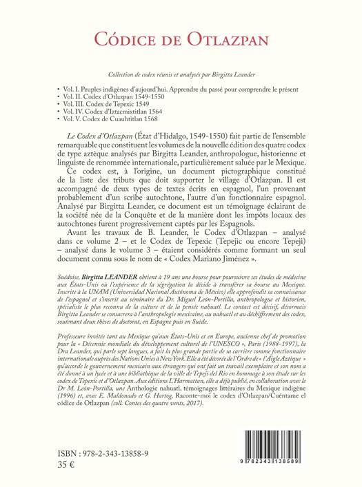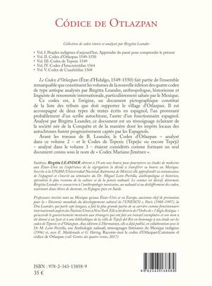 Ce codex est à l'origine un document pictographique constitué de la liste des tributs que doit supporter le village d'Otlazpan. Il est accompagné de deux types de textes écrits en espagnol, l'un provenant probablement d'un scribe autochtone, l'autre d'un fonctionnaire espagnol. Il s'agit d'un témoignage éclairant de la société née de la Conquête et de la misère dont les impôts locaux des autochtones furent progressivement captés par les Espagnols. (ouvrage rédigé en espagnol)