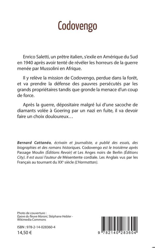 Enrico Saletti, un prêtre italien, s'exile en Amérique du Sud en 1940 après avoir tenté de révéler les horreurs de la guerre menée par Mussolini en Afrique.Il y relève la mission de Codovengo, perdue dans la forêt, et va prendre la défense des pauvres persécutés par les grands propriétaires tandis que gronde la menace d'un coupde force. Après la guerre, dépositaire malgré lui d'une sacoche de diamants volée à Goering par un nazi en fuite, il va devoir faire un choix douloureux...