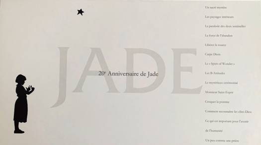 Jade se passionne pour les choses spirituelles, mystiques et humoristiques. Elle s'est mis dans la tête qu'il fallait sauver le monde et redécouvrir le sens de la vie. Coffret anniversaire.