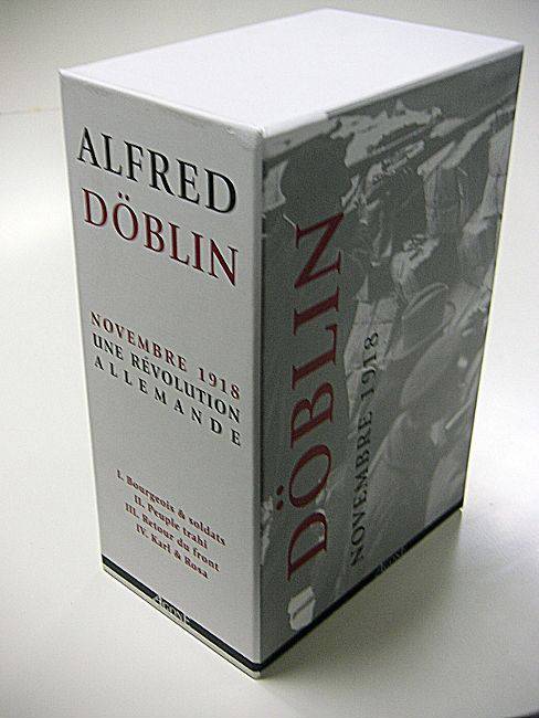 Ce coffret réunit les quatres volumes de Novembre 1918. Une révolution allemande (parus entre octobre 2008 et mai 2009) : Récit des derniers jours de la présence allemande en Alsace-Lorraine, Bourgeois et soldats installe le roman au milieu de l’agitation, soldats révoltés et population civile mêlés : officiers provisoirement détrônés et bourgeoisie locale en spectatrice ricanante ; amours qui se font et se défont; petits trafics, chapardages, et enfin les drapeaux tricolores cousus à la va-vite… Les deuxième et troisième tomes de Novembre 1918, écrits de début 1939 à mi-1940, Peuple trahi et Retour du front avaient été conçus comme un seul volume : où l’on découvre le Berlin de la misère et celui des profiteurs de guerre, des bourgeois insouciants, des petites et grandes canailles… ; ce sont aussi, entremêlées, grandes et petites manœuvres : au niveau des États, les affrontements autour du Traité de Versailles, qui décideront de l’avenir de l’Europe ; au niveau individuel, les engagements et trahisons, d’amour et de politique, prélude au dénouement sanglant du dernier tome. Écrit en 1942 depuis un exil dont l’auteur ne peut espérer la fin tant le nazisme semble triompher, _Karl et Rosa_ donne le dernier acte de l’évanouissement d’un espoir : que l’ordre ancien disparaisse avec la fin de la Grande Guerre. Personnages historiques et de fiction se croisent ici pour rendre le drame de l’écrasement de la révolution spartakiste, prélude funeste au siècle qui commençait.