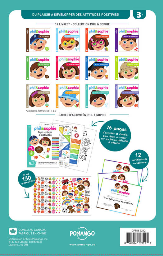 Votre enfant a-t-il du mal à gérer ses grandes émotions dans son petit corps? Découvrez ce coffret presque magique pour soutenir le développement émotif de votre enfant de manière ludique et amusante! Grâce à des activités interactives et engageantes, cet outil aide votre enfant à mieux comprendre et exprimer ses émotions, tout en s'amusant. Inclut:12 livres sur les émotions et valeurs positives, 1 cahier d’activités amusant (144 p.), plus de 130 autocollants,12 certificats de compétences.